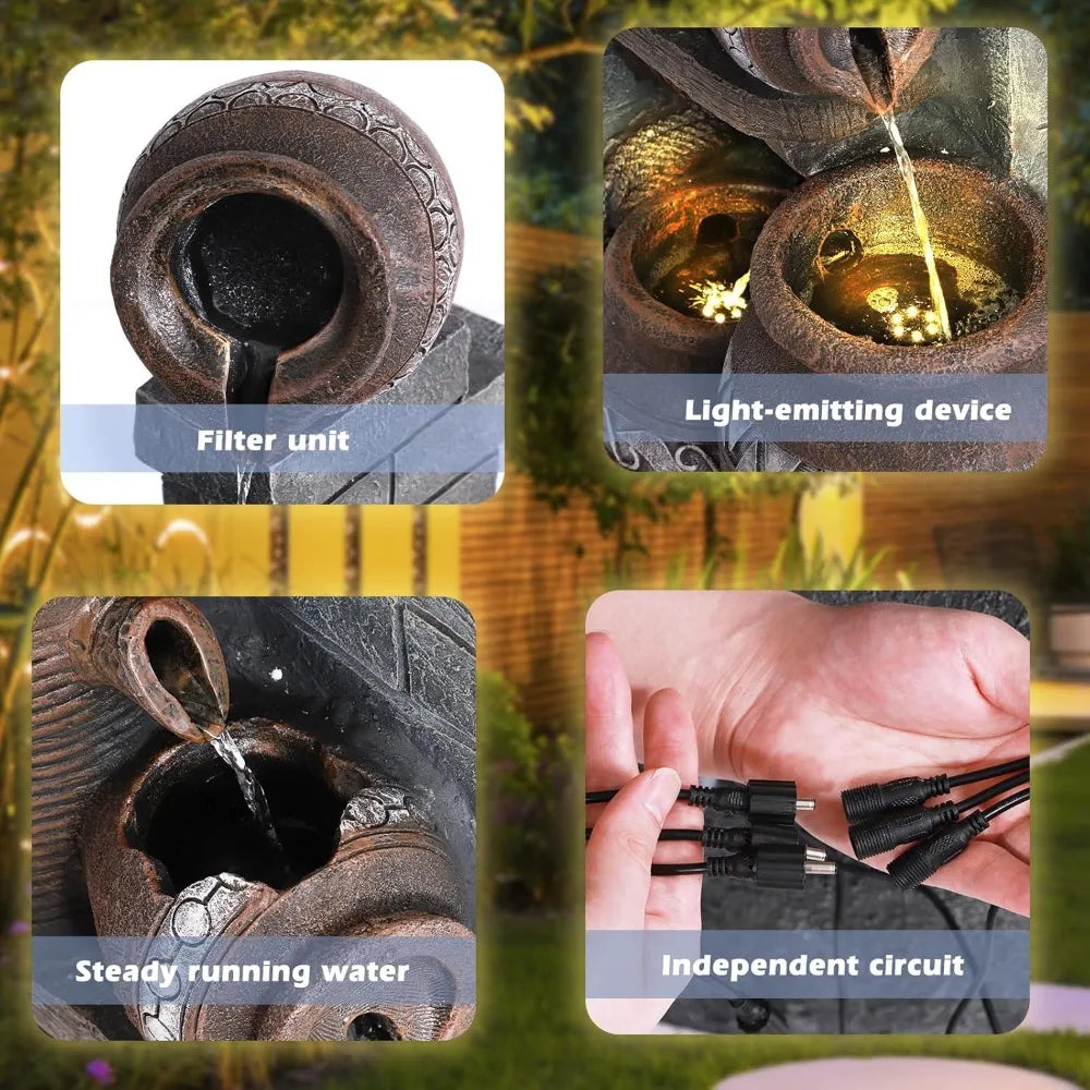 - Enchanting Illumination: Equipped with 3 warm LED lights, the fountain creates a magical glow during the evening.