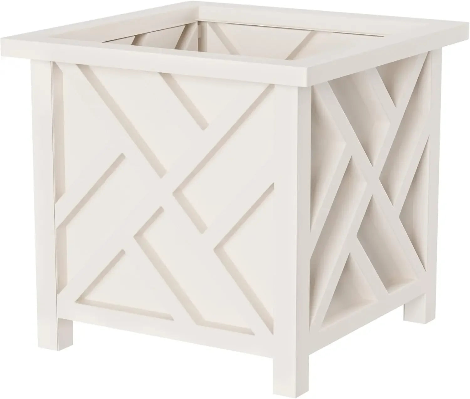 Introducing the Lattice Design Planter Box 2 Pack, the perfect blend of functionality and style, designed specifically for your outdoor spaces. Measuring 14.75 inches square, these decorative flower pots are ideal for enhancing your front porch, patio, or garden decor. The elegant farmhouse-inspired lattice design not only adds aesthetic charm but also serves as a stylish cover for your potted plants, making them a standout choice in the outdoor planter category.