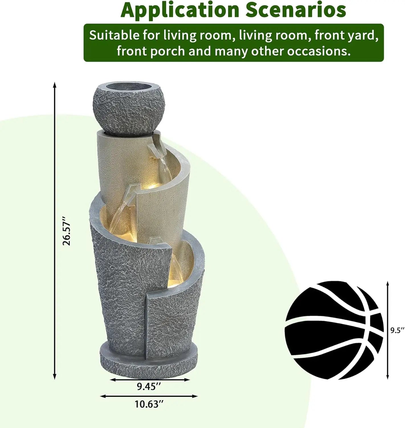 Resin Cascading Spiral Outdoor Patio Garden Fountain with Lights for Backyard Deck and Lawn